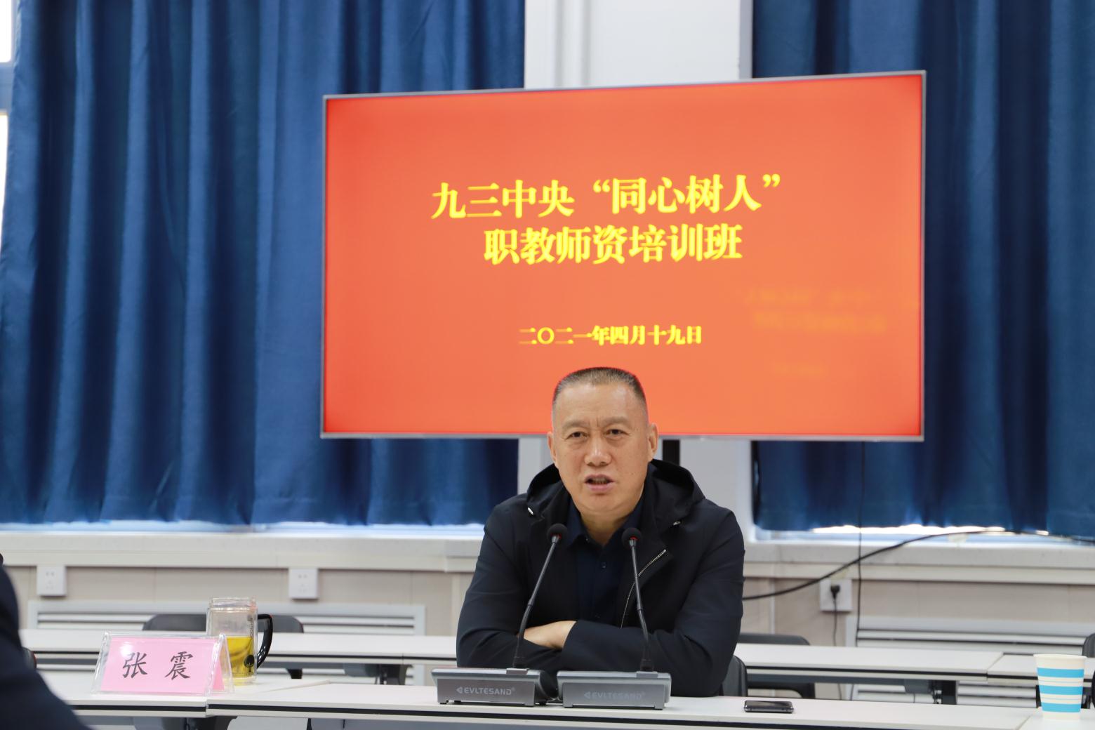 4月19日上午,九三學(xué)社中央“同心樹人”兩省三地(貴州威寧、黔西南、四川旺蒼)教育幫扶項(xiàng)目“線場(chǎng)模式”培訓(xùn)班開班儀式在河南機(jī)電職業(yè)學(xué)院九三社員之家(行政樓413)隆重舉行。河南機(jī)電職業(yè)學(xué)院黨委書記張震,九三河南省委專職副主委陳志民,河南機(jī)電職業(yè)學(xué)院副院長、九三學(xué)社河南機(jī)電職業(yè)學(xué)院支社主委王慶海,社省委辦公室主任刁衛(wèi)星,九三學(xué)社畢節(jié)市委綜合辦公室主任楊威,兩省三地來豫參加“線場(chǎng)模式”的職教骨干教師,九三學(xué)社河南機(jī)電職業(yè)學(xué)院支社全體社員參加了開班儀式。儀式由河南機(jī)電職業(yè)學(xué)院副院長、九三學(xué)社河南機(jī)電職業(yè)學(xué)院支社主委、九三河南省產(chǎn)教融合專業(yè)委員會(huì)主委王慶海主持。