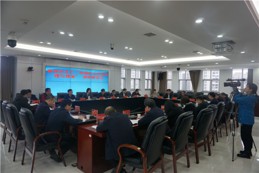 調(diào)研組實(shí)地察看了邵東市流澤鎮(zhèn)山龍礦涌水處理廠、新邵縣龍山金銻礦、冷水江市錫礦山、漣源市安平鎮(zhèn)頭石露天煤礦治理與修復(fù)情況,并在邵陽、婁底分別召開座談會(huì),與相關(guān)市縣政府及發(fā)改委、財(cái)政局、自然資源和規(guī)劃局、生態(tài)環(huán)境局等相關(guān)單位,企業(yè)負(fù)責(zé)人進(jìn)行了深入交流。