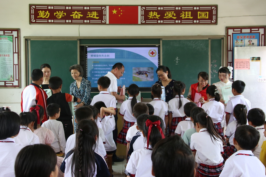 查國華醫(yī)生認(rèn)真準(zhǔn)備了PPT,專門針對(duì)農(nóng)村孩子常見的如溺水、動(dòng)物咬傷、蜇傷、燒燙傷等十余種意外傷害情況分別進(jìn)行了詳細(xì)的急救方式介紹,通過與教師、學(xué)生們的互動(dòng)問答,讓大家對(duì)這些切實(shí)有效的救急辦法有了深刻的印象。