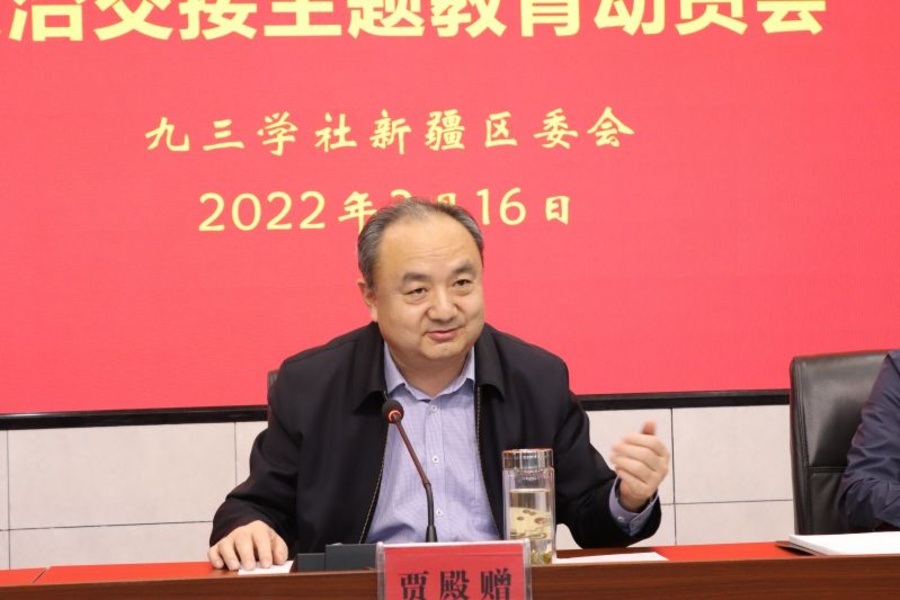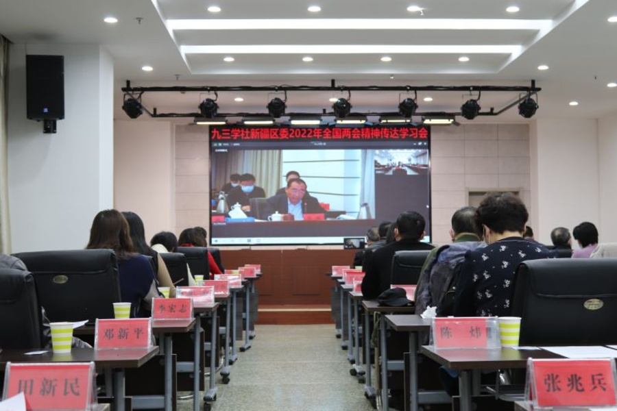 3月16日上午,九三學(xué)社新疆維吾爾自治區(qū)委員會(huì)組織社員代表參加社中央2022年全國(guó)“兩會(huì)”精神傳達(dá)學(xué)習(xí)暨社中央“矢志不渝跟黨走 攜手奮進(jìn)新時(shí)代”政治交接主題教育動(dòng)員會(huì)。會(huì)議以視頻形式召開(kāi),全國(guó)政協(xié)委員、自治區(qū)政協(xié)常委、九三學(xué)社新疆區(qū)委主委賈殿贈(zèng)、社新疆區(qū)委一級(jí)巡視員李安民、副主委肖虎、副主委劉濤出席會(huì)議,社員代表及社區(qū)委機(jī)關(guān)工作人員40余人參加了會(huì)議。
