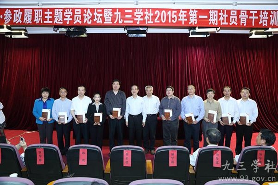 為期1周的九三學(xué)社2015年第1期社員骨干培訓(xùn)班4月26日在中國(guó)人民大學(xué)培訓(xùn)學(xué)院圓滿結(jié)束。九三學(xué)社中央主席韓啟德出席學(xué)員論壇暨結(jié)業(yè)式并講話。九三學(xué)社中央常務(wù)副主席邵鴻做開(kāi)班動(dòng)員講話并為學(xué)員授課。九三學(xué)社中央副主席叢斌為學(xué)員授課。來(lái)自九三學(xué)社全國(guó)30個(gè)省級(jí)組織的95名社員骨干參加培訓(xùn)。