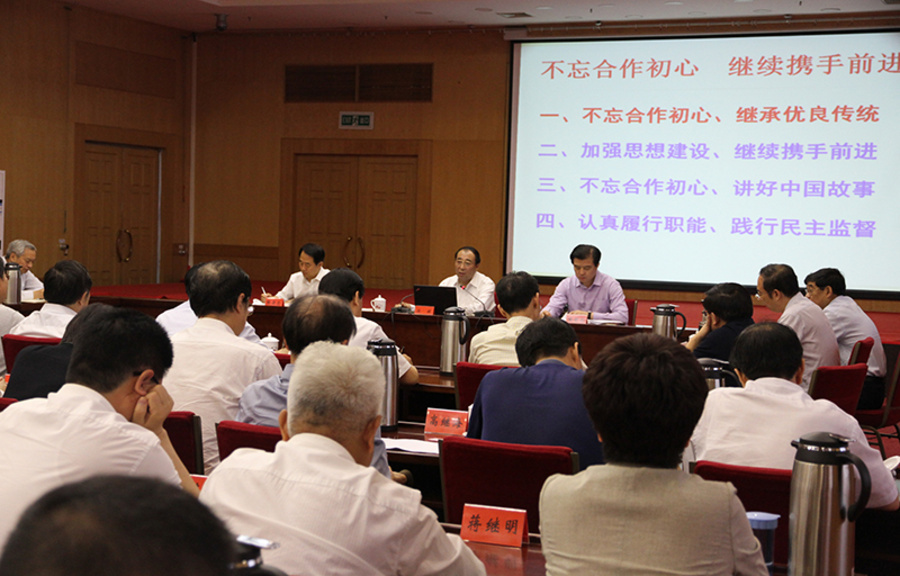 報(bào)告從不忘合作初心、繼承優(yōu)良傳統(tǒng);加強(qiáng)思想建設(shè)、繼續(xù)攜手前進(jìn);不忘合作初心、講好中國故事;認(rèn)真履行職能、踐行民主監(jiān)督等四個方面進(jìn)行闡述。報(bào)告站位高、立意深,視野寬、觀點(diǎn)新,為河南各民主黨派、工商聯(lián)負(fù)責(zé)人和無黨派人士代表深入推進(jìn)堅(jiān)持和發(fā)展中國特色社會主義學(xué)習(xí)實(shí)踐活動,加強(qiáng)參政黨建設(shè)提供了方法論指導(dǎo)。