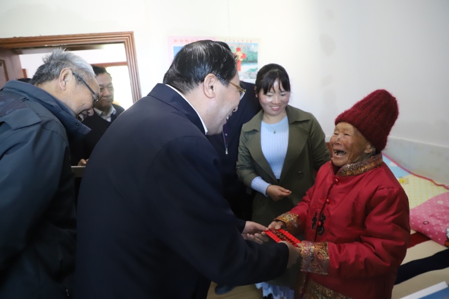 叢斌一行在威寧縣迆那鎮(zhèn)、斗古鎮(zhèn),旺蒼縣白水鎮(zhèn)敬老院看望慰問了98位孤寡老人,實(shí)地查看敬老院的住宿、醫(yī)務(wù)、廚房、公共活動(dòng)場所等設(shè)施,詳細(xì)了解了敬老院工作開展及老人們的生活情況,向老人們送去九三學(xué)社的親切問候和新春祝福,并逐一發(fā)放慰問金。勉勵(lì)當(dāng)?shù)馗刹壳袑?shí)做好養(yǎng)老助殘工作,讓老人們吃飽、穿暖,過一個(gè)歡樂祥和的春節(jié)。