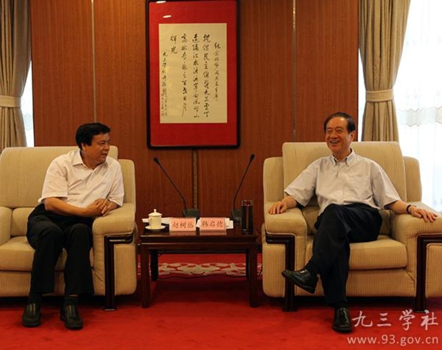 7月2日,全國(guó)政協(xié)副主席、九三學(xué)社中央主席韓啟德在九三學(xué)社中央機(jī)關(guān)會(huì)見國(guó)家林業(yè)局局長(zhǎng)趙樹叢一行。九三學(xué)社中央常務(wù)副主席邵鴻,副主席兼秘書長(zhǎng)印紅參加會(huì)見。