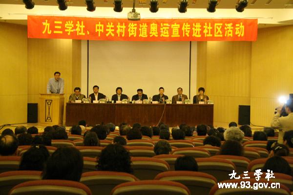 九三學社北京市委4月14日下午在海淀區(qū)中關村街道舉辦“奧運宣傳進社區(qū)”活動。九三學社中央副主席邵鴻出席活動并講話。
