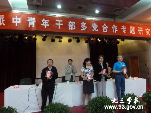 邵鴻副主席與民革中央、中央統(tǒng)戰(zhàn)部、中央社院的負(fù)責(zé)同志向本期研究班的72名學(xué)員頒發(fā)結(jié)業(yè)證書(shū)。