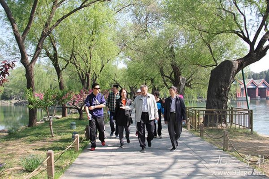 上午9點,隨著九三學社中央常務(wù)副主席邵鴻簡短發(fā)令:開始,健步走活動正式拉開帷幕。健步走路線從新建宮門出發(fā),沿昆明湖東堤繞行一周,全程約6公里。一路行來,綠樹蔭濃,水光瀲滟,陽光明媚,風吹浮云。邵鴻與大家邊走邊聊,從昆明湖與玉泉山的淵源、佛香閣與九三學社的趣聞到匾聯(lián)的國學解讀,無不信手拈來、侃侃而談。這次實地“講座”使不少同志意出望外,大呼“過癮”。還有些人三三兩兩結(jié)伴而行,有的疾步快行,遙遙領(lǐng)先,大展運動健將的風采,有的氣勢沉穩(wěn),不疾不徐,輕聲慢語間,或討論工作斟酌細節(jié),或山南海北胡侃神聊,時而贊許頷首,時而會心一笑。在這柳暗花明、如錦似繡的風景畫卷中,每個人都心情大好,一路上笑容綻放!