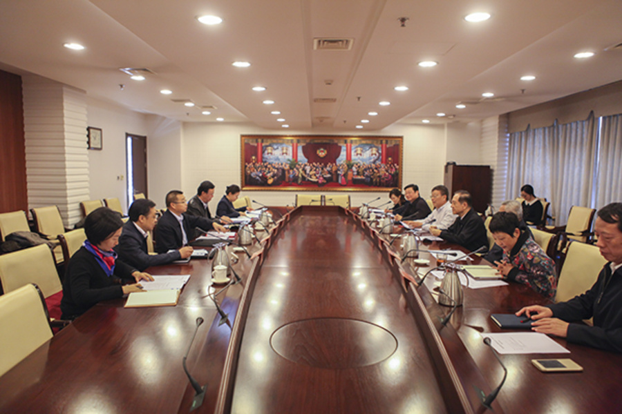 財(cái)政部科教司司長趙路、預(yù)算司副司長陳新華、行政政法司副司長區(qū)利民等隨同來訪。九三學(xué)社中央辦公廳主任茍紅旗、社會(huì)服務(wù)部部長徐國權(quán)等會(huì)見時(shí)在座。(文/張博燕 攝影/胡超)