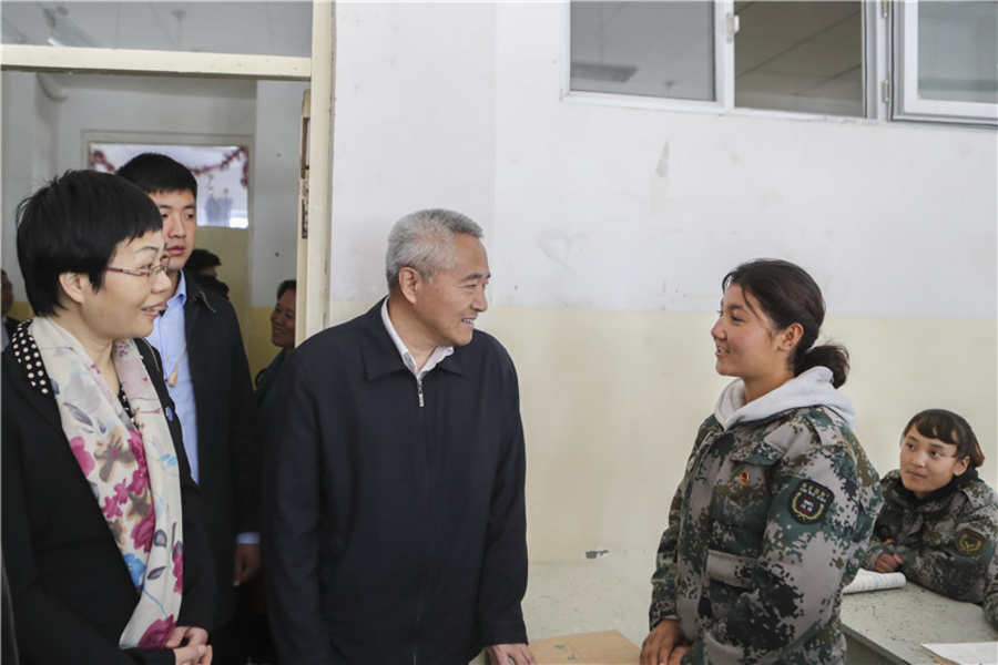 10月24日,邵鴻在喀什地區(qū)技師學(xué)院看望對口支教老師。
