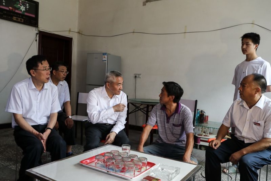 7月10日,調(diào)研組在陜西省商南縣鹿城中學(xué)調(diào)研教育扶貧情況