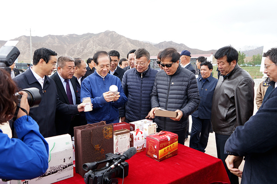 諾木洪是青海最大的柴達(dá)木枸杞生產(chǎn)基地,連片的枸杞地與遍地的沙棘林相映成景。在諾木洪枸杞產(chǎn)業(yè)園,韓啟德詳細(xì)了解枸杞品種、種植、施肥、摘果、收入等情況,提出要立足綠色有機(jī),做好深加工,增加附加值。