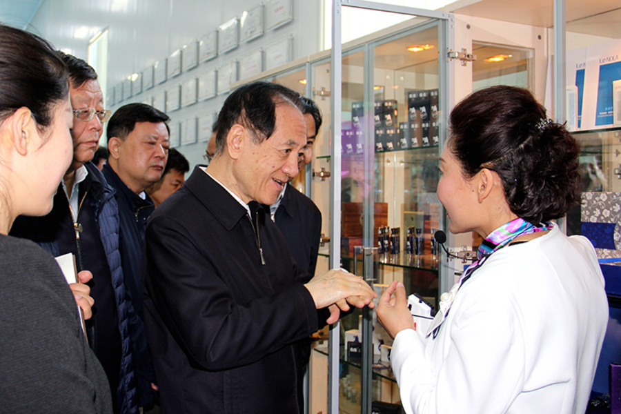 韓啟德仔細(xì)詢問都蘭縣柴興村綠洲農(nóng)業(yè)發(fā)展情況,了解當(dāng)?shù)噩斂А⑥见湹姆N植規(guī)模、經(jīng)濟(jì)效益、田間管理等情況;在青海祥博生物科技公司,韓啟德零距離觀察了有機(jī)枸杞掛花現(xiàn)狀,品嘗了雪域圣峰枸杞果酒,了解枸杞深加工產(chǎn)業(yè)發(fā)展情況,指出要嚴(yán)把質(zhì)量關(guān)、做好做精枸杞深加工,突出特色優(yōu)勢(shì),不斷提高質(zhì)量和品牌知名度;在中控太陽能發(fā)電有限公司50MW塔式太陽能光熱發(fā)電站,韓啟德參觀了一期工程10MW電站的鏡場(chǎng)、電站主控室及汽輪機(jī)平臺(tái),了解光熱儲(chǔ)能電站的工藝流程、聚光、吸熱、儲(chǔ)熱等關(guān)鍵核心技術(shù)、創(chuàng)新亮點(diǎn)及光熱產(chǎn)業(yè)的未來發(fā)展方向,希望企業(yè)繼續(xù)加強(qiáng)熱發(fā)電技術(shù)研究,推進(jìn)科研成果轉(zhuǎn)化。