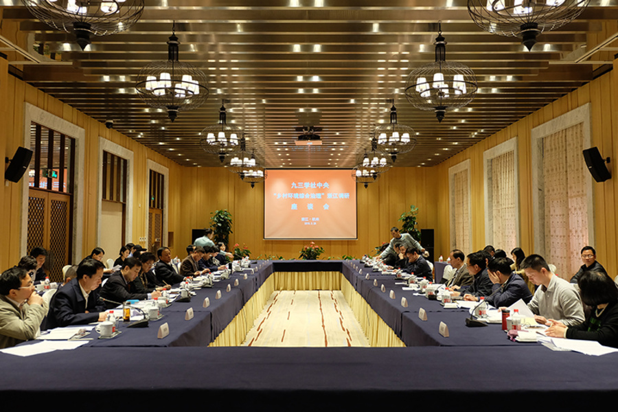 3月28日,調(diào)研組在杭州召開“浙江省鄉(xiāng)村環(huán)境綜合治理”座談會(huì),聽取中共浙江省委、省政府有關(guān)負(fù)責(zé)人介紹浙江全面推進(jìn)農(nóng)村生活污水治理、農(nóng)村生活垃圾分類、小城鎮(zhèn)綜合環(huán)境整治等情況。浙江省副省長(zhǎng)陳偉俊致辭并向調(diào)研組介紹相關(guān)情況,浙江省委統(tǒng)戰(zhàn)部、省政府相關(guān)部門負(fù)責(zé)人參加座談會(huì)并與調(diào)研組交流研討。