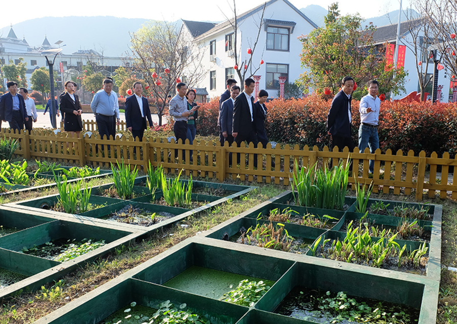 3月28日,調(diào)研組在浙江紹興柯橋區(qū)漓渚鎮(zhèn)棠棣村調(diào)研生活污水處理設(shè)施。