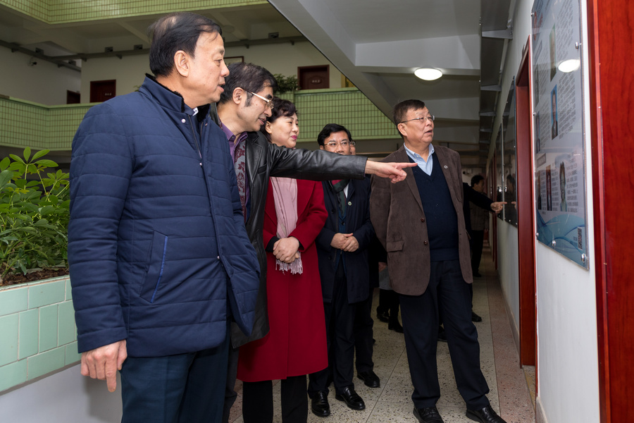 2月18日,武維華在九三學社湖南省委機關(guān)參觀機關(guān)文化墻,了解湖南省社務工作開展情況。