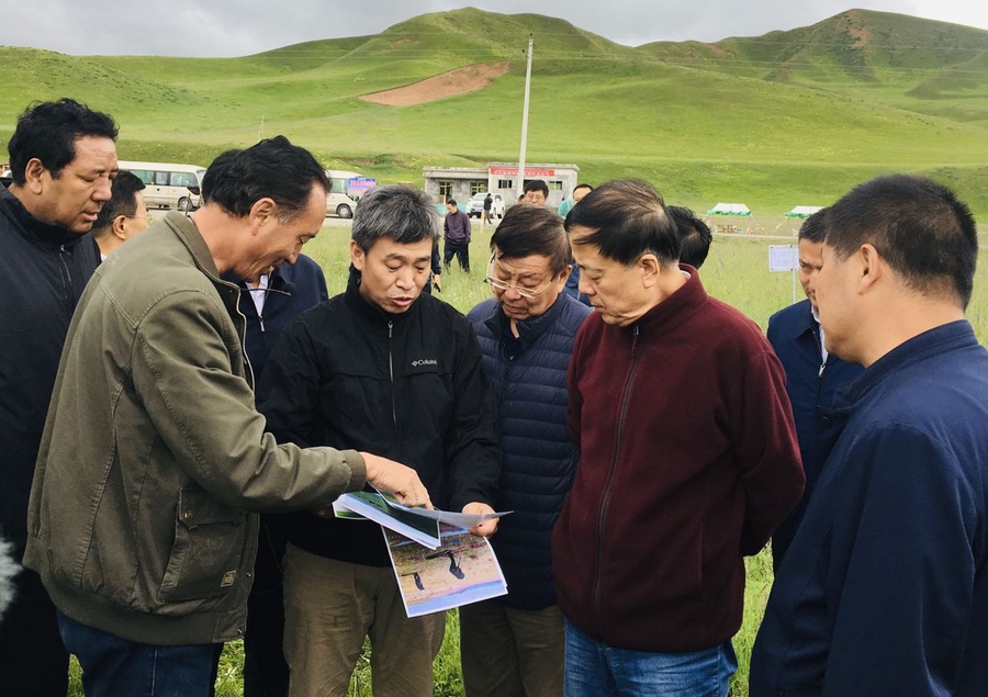 在甘肅,武維華一行先后赴臨夏回族自治州、甘南藏族自治州實地考察了劉家峽水電站、碌曲縣尕海濕地、瑪曲縣阿萬倉濕地和沙化草原綜合示范區(qū),以及九三學(xué)社中央在夏河縣桑科鎮(zhèn)推動建設(shè)的“草原生態(tài)修復(fù)與生產(chǎn)力恢復(fù)”試驗點。詳細了解各地在濕地生態(tài)環(huán)境保護、草原沙化治理以及免耕補播技術(shù)試驗等方面的工作進展。武維華強調(diào),草原是保障國家生態(tài)安全的重要屏障,要深入貫徹落實習(xí)近平生態(tài)文明思想,堅決執(zhí)行中央有關(guān)文件要求,出臺更多符合地方實際的政策,持續(xù)推動草原生態(tài)文明建設(shè)。同時,要加強相關(guān)領(lǐng)域科學(xué)研究和技術(shù)攻關(guān),加大資金投入和政策扶持力度,促進科技成果的轉(zhuǎn)化應(yīng)用,強化科技對草原保護建設(shè)利用的支撐作用,提高草原生產(chǎn)力。