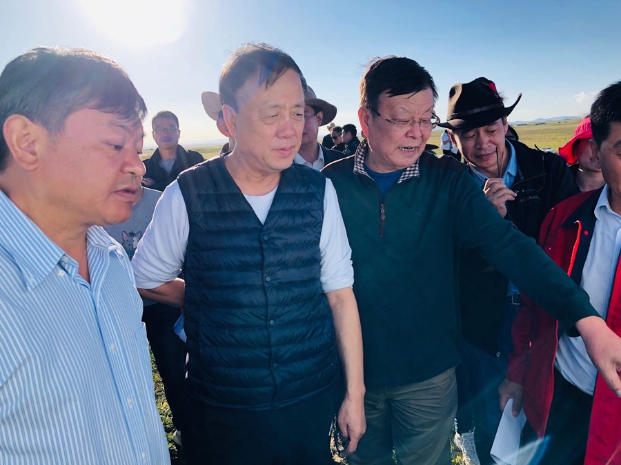 8月8日,武維華在甘肅省夏河縣考察九三學(xué)社中央“草原生態(tài)修復(fù)與生產(chǎn)力恢復(fù)”試驗點