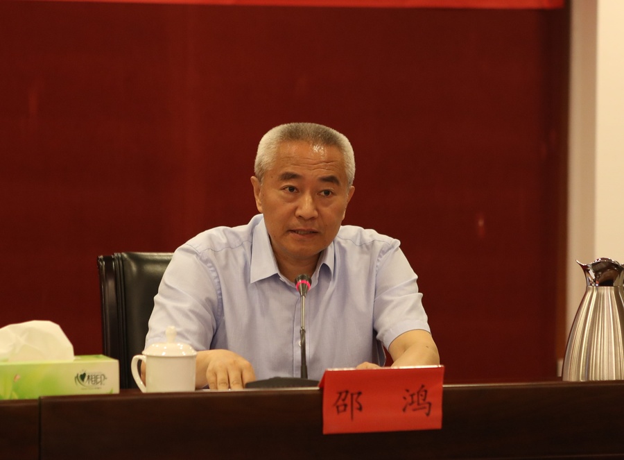 九三學(xué)社中央常務(wù)副主席邵鴻主持會(huì)議并宣布“不忘合作初心,繼續(xù)攜手前進(jìn)”主題教育活動(dòng)領(lǐng)導(dǎo)小組名單。