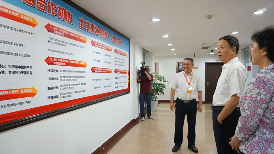 會前,武維華一行參觀了九三學(xué)社重慶市委老年社員活動中心。敞亮的空間,優(yōu)化的布局,豐富的資料展示,給武維華再次留下深刻印象——2017年12月,武維華到重慶調(diào)研時,就曾專門提及社重慶市委老年社員工作的亮點(diǎn),鼓勵社市委總結(jié)經(jīng)驗、繼續(xù)開拓,爭取在老年社員工作上更上一層樓。
