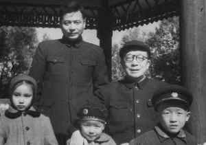 1963年10月,許德珩與鄧稼先及孫兒輩攝于香山(中間為作者)。