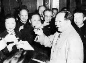 圖:1960年1月毛澤東與勞君展(左一)等在一起。