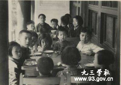 九三學(xué)社舊址是一個(gè)兩進(jìn)的院落。從朝北的大門進(jìn)去以后,左手邊的北院是一排四間平房,這里是社中央宣傳部和組織部辦公的地方。向里面走,經(jīng)過左手邊的收發(fā)室以后,向左轉(zhuǎn)就進(jìn)入了南院。若從收發(fā)室一直走是一個(gè)夾道,夾道的右手邊是一棟坐西朝東的兩層小樓,這是當(dāng)年社北京分社(1988年社北京市第七次代表大會(huì)始更名為社北京市委)辦公的地方。南院的北屋有三間房,是社中央領(lǐng)導(dǎo)的辦公室。西屋和東屋各三間,是社中央辦公廳的辦公室和圖書室。三間南屋是會(huì)議室。照片上這么多兒童,他們是誰家的孩子?他們在社中央領(lǐng)導(dǎo)的辦公室外面干什么呢?