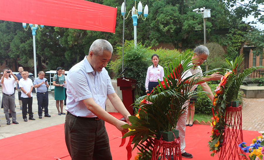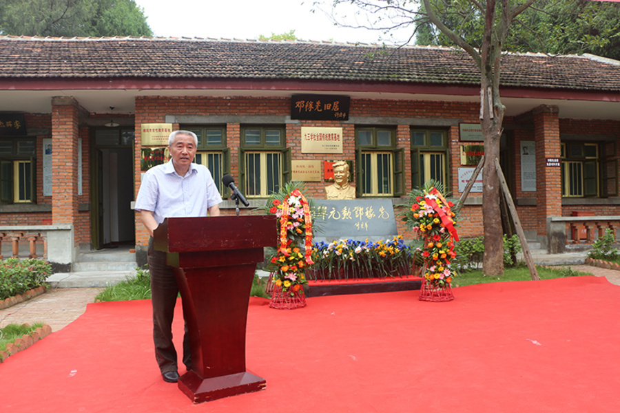 今年是我國氫彈爆炸成功50周年,9月14日,“九三學(xué)社全國傳統(tǒng)教育基地”授牌儀式在綿陽梓潼“兩彈城”鄧稼先舊居前舉行。全國政協(xié)常委、副秘書長(zhǎng)、九三學(xué)社中央常務(wù)副主席邵鴻為“兩彈城”授牌,并與全國政協(xié)委員、九三學(xué)社中央委員、鄧稼先親屬許進(jìn)一道,向鄧稼先銅像敬獻(xiàn)了鮮花。