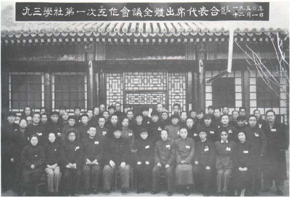 1950年12月,九三學社召開了建國以來第一次全國工作會議。會議明確了九三學社“新民主主義政黨”的性質,確定了“在政協(xié)共同綱領的原則下,團結進步的知識分子、進步的文教科學工作者,為建設新民主主義的新中國而努力”的政治任務;選舉產生了九三學社第二屆中央理事會。