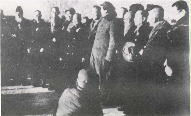 1949年3月25日,毛澤東率中共中央機(jī)關(guān)和人民解放軍總部從河北省平山縣西柏坡到達(dá)北平。圖為毛澤東同民主黨派負(fù)責(zé)人和其他民主人士在西苑機(jī)場。左起:譚平山、張東蓀、陸志韋、沈鈞儒、朱德、李濟(jì)深、郭沫若、毛澤東、黃炎培、陳叔通、章伯鈞、周建人、許德珩。
