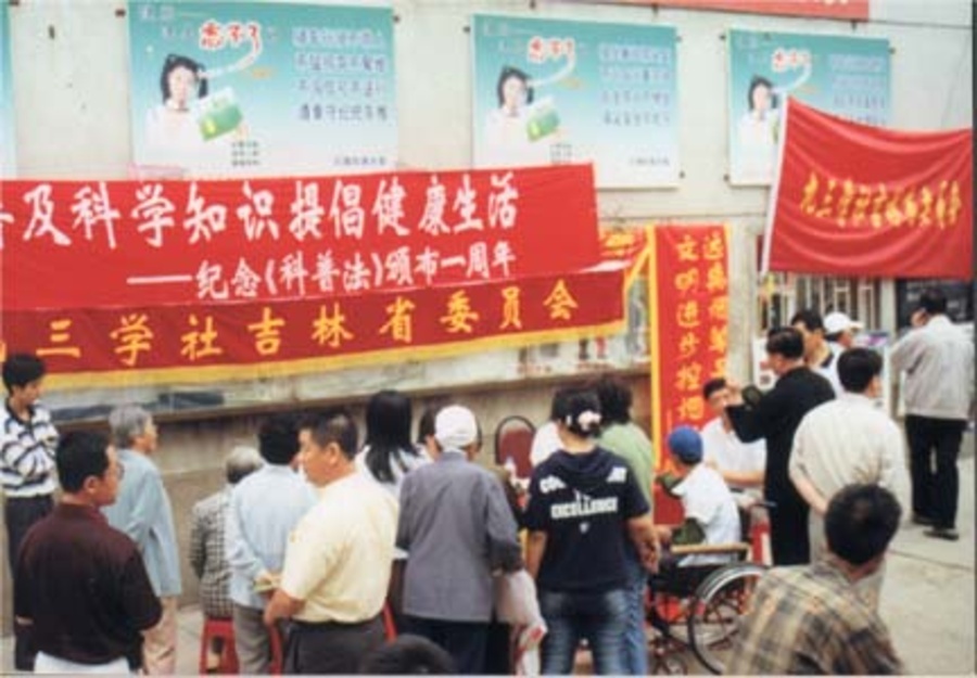 6月29日,為紀(jì)念《科普法》頒布一周年,九三學(xué)社吉林省委與九三學(xué)社長春市委共同舉辦了主題為“普及科學(xué)知識、提倡健康生活”的送醫(yī)送藥、宣講科普知識進(jìn)社區(qū)的紀(jì)念活動。省、市委的領(lǐng)導(dǎo)和來自吉林省科學(xué)技術(shù)情報所、吉林省醫(yī)院的專家學(xué)者帶著被首都博物館作為現(xiàn)代文物收藏的《防治非典三字經(jīng)》、《老年健康知識》和科學(xué)生活、摒棄陋習(xí)的宣傳資料共計600冊,價值700元的藥品、聽診器、血壓儀等物品,來到長春市朝陽區(qū)紅旗街道辦事處下屬的開工小區(qū),就實施科教興國和可持續(xù)發(fā)展戰(zhàn)略、提高公民的科學(xué)文化素質(zhì)進(jìn)行了宣講,并且為到場的350余人進(jìn)行了健康檢查,發(fā)放了藥品。這次紀(jì)念活動受到社區(qū)老百姓的熱烈歡迎,得到政府有關(guān)領(lǐng)導(dǎo)的肯定,希望九三學(xué)社今后能夠多組織這樣的活動。
