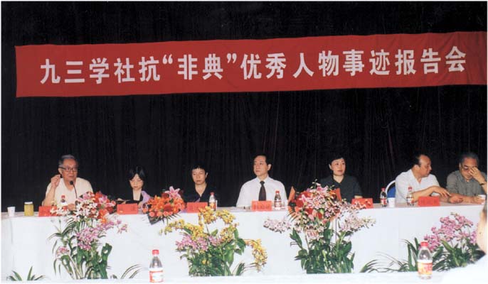 開展“三增強”、“四熱愛”教育活動 九三學(xué)社舉行抗非典優(yōu)秀人物事跡報告會 2003年6月23日 九三學(xué)社中央宣傳部 23日上午,九三學(xué)社舉行了抗非典優(yōu)秀人物事跡報告會。全國人大常委會副委員長、九三學(xué)社中央主席韓啟德出席會議并作了重要講話。來自防治非典一線的北大第一醫(yī)院防治非典醫(yī)療隊總護士長柴潔、北大第一醫(yī)院呼吸內(nèi)科副教授聶立功、北京東方醫(yī)院副院長林謙同志講述了參加防治非典斗爭的感人事跡,九三學(xué)社北京市委同志介紹了在京的九三學(xué)社成員群體在北京抗擊非典期間的突出表現(xiàn)。九三學(xué)社中央副主席陳抗甫、洪紱曾、金開誠,秘書長徐國權(quán),以及來自北京市的部分基層社員、社中央和社北京市委的全體機關(guān)干部150余人出席了會議。報告會由金開誠副主席主持,