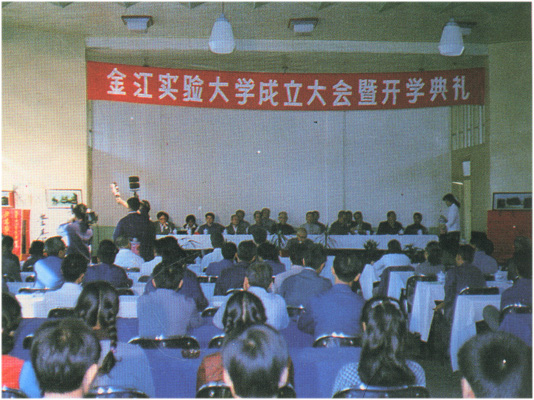九三學(xué)社攀枝花市委會(huì)主辦的金江實(shí)驗(yàn)大學(xué),成立于1984年10月。圖為金江實(shí)驗(yàn)大學(xué)成立大會(huì)暨開(kāi)學(xué)典禮。