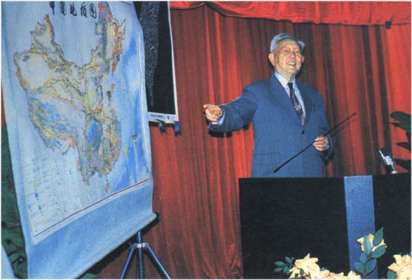 地質(zhì)學(xué)家、中科院院士郭令智長期從事中國南部大地構(gòu)造、板塊構(gòu)造及大陸邊緣地質(zhì)研究,曾獲國家自然科學(xué)獎。圖為1995年4月,郭令智在中國地質(zhì)大學(xué)作學(xué)術(shù)報告。