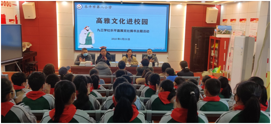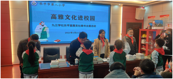 “書中自有黃金屋,書中自有顏如玉”。讀書是一種美的享受,更是給人帶來心靈滌蕩的過程。為豐富學(xué)生的課外生活,提高教師的專業(yè)水平,近日,九三學(xué)社樂平直屬支社全體社員來到樂平市第八小學(xué),開展“高雅文化進(jìn)校園,愛心送書”活動。樂平市委統(tǒng)戰(zhàn)部副部長朱少華應(yīng)邀參加活動。