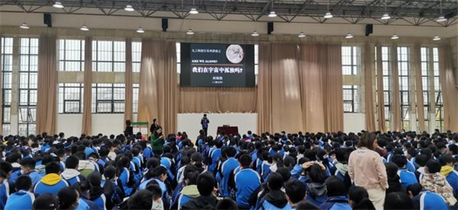 田海俊從地外生命與文明是否存在、太陽(yáng)系內(nèi)生命的搜尋、系外行星的搜尋、智慧生命的搜尋和人類目前對(duì)宇宙的認(rèn)識(shí)等方面,向宜昌市八中的學(xué)生們進(jìn)行講解。他從“地球生命在宇宙中是否獨(dú)一無(wú)二”這一疑問(wèn)開(kāi)始,激發(fā)學(xué)生們的好奇心,隨后展示了很多國(guó)際領(lǐng)先水平的高倍望遠(yuǎn)鏡所觀測(cè)到的圖片、動(dòng)畫(huà)演示以及身邊事例和海量數(shù)據(jù),向?qū)W生們介紹在宇宙中發(fā)生的故事和近期國(guó)際天文形勢(shì),讓同學(xué)們掌握最新天文動(dòng)態(tài)。講解深入淺出,通俗易懂,風(fēng)趣幽默,同學(xué)們被深深吸引,互動(dòng)活躍并不時(shí)發(fā)出驚嘆。