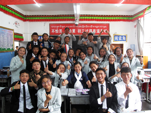 2019年,劉斯寫請愿書“求”來二次援藏。她既當老師上課,還任教科室副主任,創(chuàng)辦援藏名師工作室。她積極牽線搭橋,對接福建的名校名師與當?shù)乩蠋熉?lián)合開展“云課堂”“云教研”, 有效縮小區(qū)域與校際之間教育質(zhì)量差距。她指導(dǎo)受援校完成的感恩教育教學成果,成功入圍第五屆中國教博會,填補了昌都市教育科研的空白。