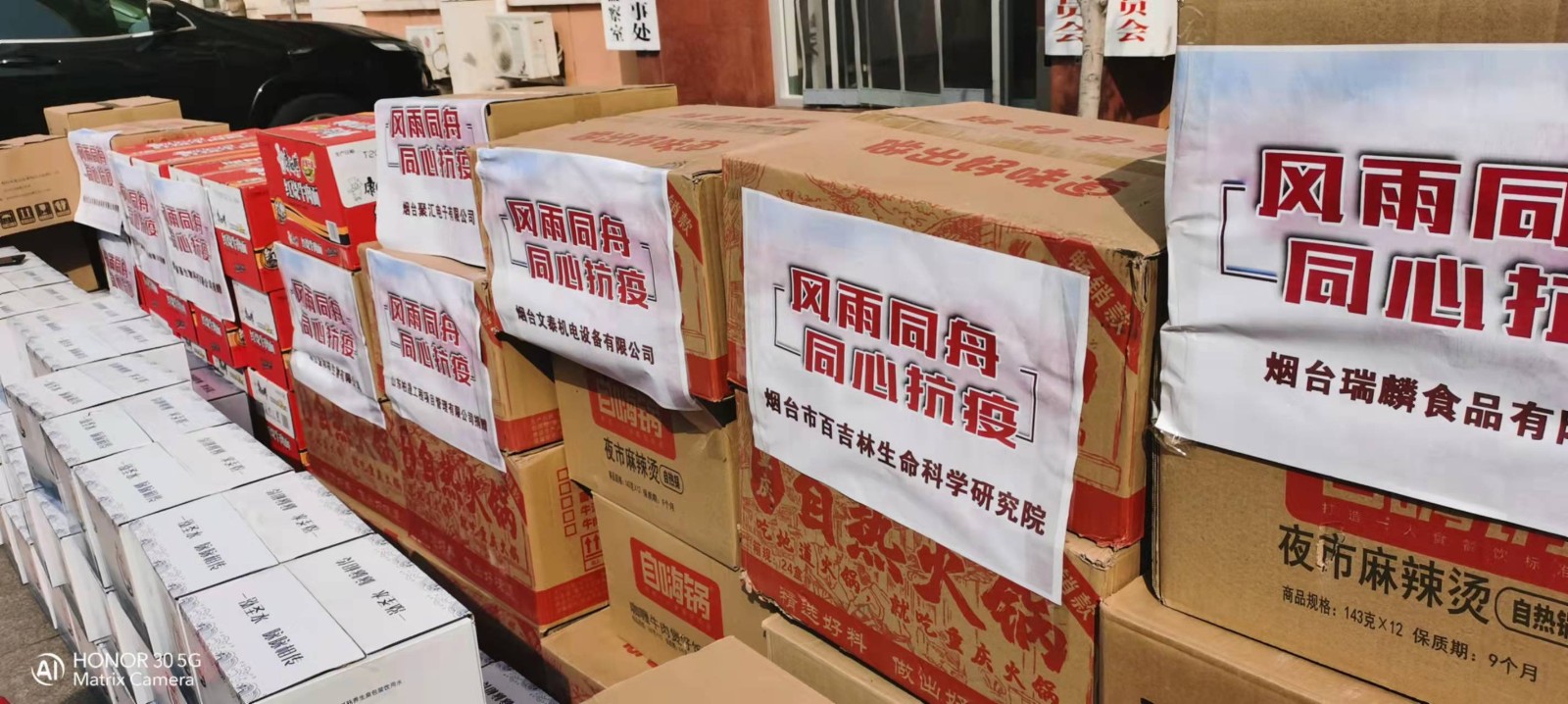 牟悅松、荊崇禎、侯艷玲、吳中英、孫壽賢、李緒沖、王仁智、翟少磊、李乃濤、李一、劉華鋒等社員參與本次活動,共捐贈N95口罩2000個、消毒液300瓶、免洗手消毒凝膠10箱、防疫手套2箱、防疫面罩1箱及礦泉水50箱、火腿腸2箱、其他方便食品(點心、自加熱方便食品等53箱)。(仲曉寧)