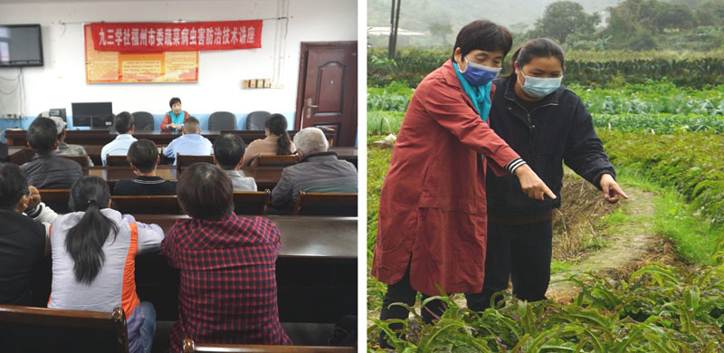 活動(dòng)舉辦了蔬菜病蟲(chóng)害防治技術(shù)講座,林碧英結(jié)合當(dāng)?shù)剞r(nóng)業(yè)發(fā)展實(shí)際,并根據(jù)蔬菜生產(chǎn)特點(diǎn),深入淺出地介紹了綠色蔬菜病蟲(chóng)害防治的關(guān)鍵技術(shù)和方法。蔬菜專(zhuān)家開(kāi)出的“藥方”既減藥省工,又增效控害。林碧英等專(zhuān)家社員還帶著當(dāng)?shù)剞r(nóng)技干部深入田間地頭,面對(duì)面地指導(dǎo)蔬菜栽培和病蟲(chóng)害防治。