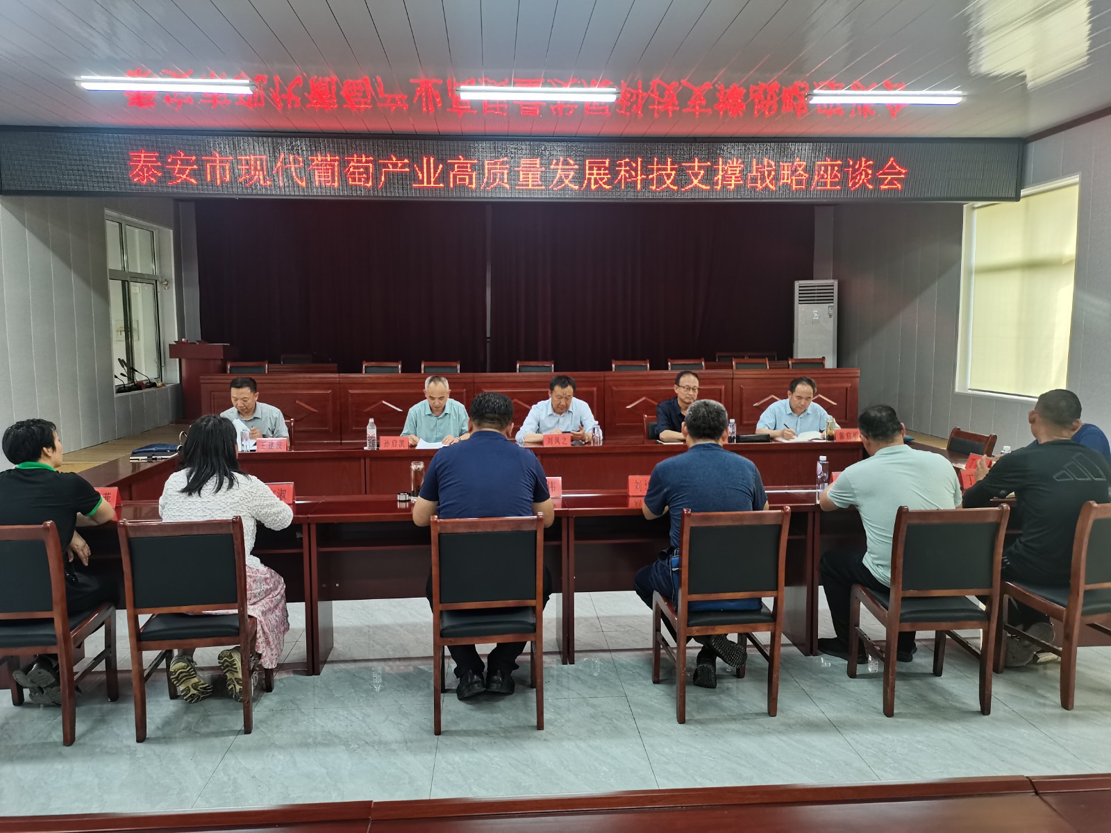 隨后召開泰安市現(xiàn)代葡萄產(chǎn)業(yè)高質(zhì)量發(fā)展科技支撐戰(zhàn)略座談會(huì)。會(huì)上,基地負(fù)責(zé)人匯報(bào)了葡萄產(chǎn)業(yè)發(fā)展現(xiàn)狀與存在問題,劉鳳之、王金政系統(tǒng)全面地審視泰安市現(xiàn)代葡萄高質(zhì)量發(fā)展的歷史、現(xiàn)狀與存在問題,從管理模式、培優(yōu)品種、做好品牌等方面提出了發(fā)展意見、建議和切實(shí)有效的解決方案。