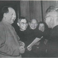 茅以升陪同毛主席接見出席全國政協(xié)二屆三次會議的科技組委員