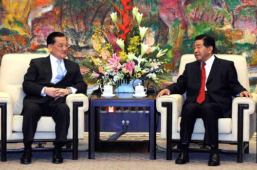 賈慶林對連戰(zhàn)一行前來參加第四屆兩岸經(jīng)貿(mào)文化論壇表示熱烈歡迎,并轉(zhuǎn)達(dá)了胡錦濤總書記的親切問候。