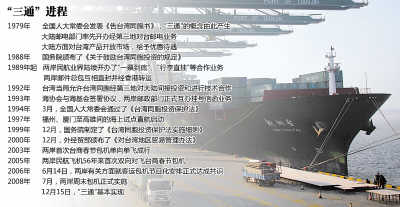 12月15日,大陸海協(xié)會與臺灣海基會11月4日簽署的有關兩岸海運直航、空運直航、直接通郵的三項協(xié)議正式生效。走過30年風雨歷程,海峽兩岸“三通”終于化繭成蝶,基本實現(xiàn)。