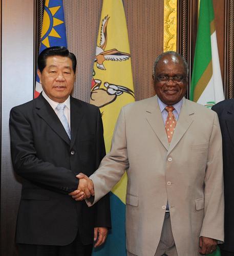 3月26日,中國全國政協(xié)主席賈慶林在溫得和克會(huì)見納米比亞總統(tǒng)波漢巴。新華社記者李濤攝