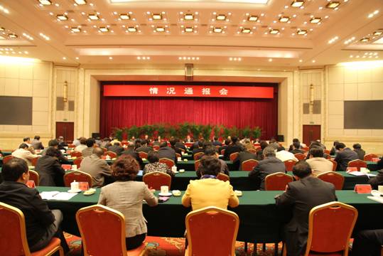 10月19日,全國(guó)政協(xié)副主席、中共中央統(tǒng)戰(zhàn)部部長(zhǎng)杜青林向各民主黨派中央、全國(guó)工商聯(lián)領(lǐng)導(dǎo)人和無黨派人士通報(bào)中共十七屆六中全會(huì)精神。本網(wǎng)記者 胡曉峰攝