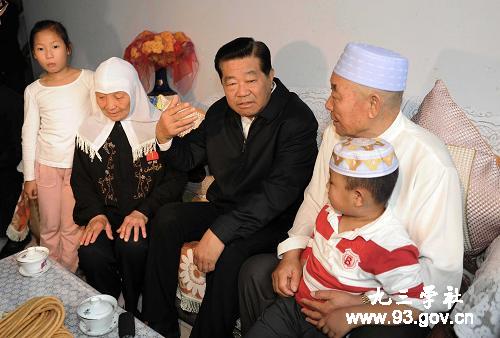 9月3日至7日,中共中央政治局常委、全國政協(xié)主席賈慶林先后來到寧夏中衛(wèi)、固原、吳忠、銀川等地,深入企業(yè)車間、種植基地、城市社區(qū)、居民家庭,就做好新形勢下的統(tǒng)戰(zhàn)和政協(xié)工作、民族和宗教工作,促進少數(shù)民族和民族地區(qū)經(jīng)濟平穩(wěn)較快發(fā)展,維護社會和諧穩(wěn)定大局,進行調(diào)研。這是9月5日,賈慶林在吳忠市金星社區(qū)走訪回族群眾馬克勤家。新華社記者 樊如鈞 攝