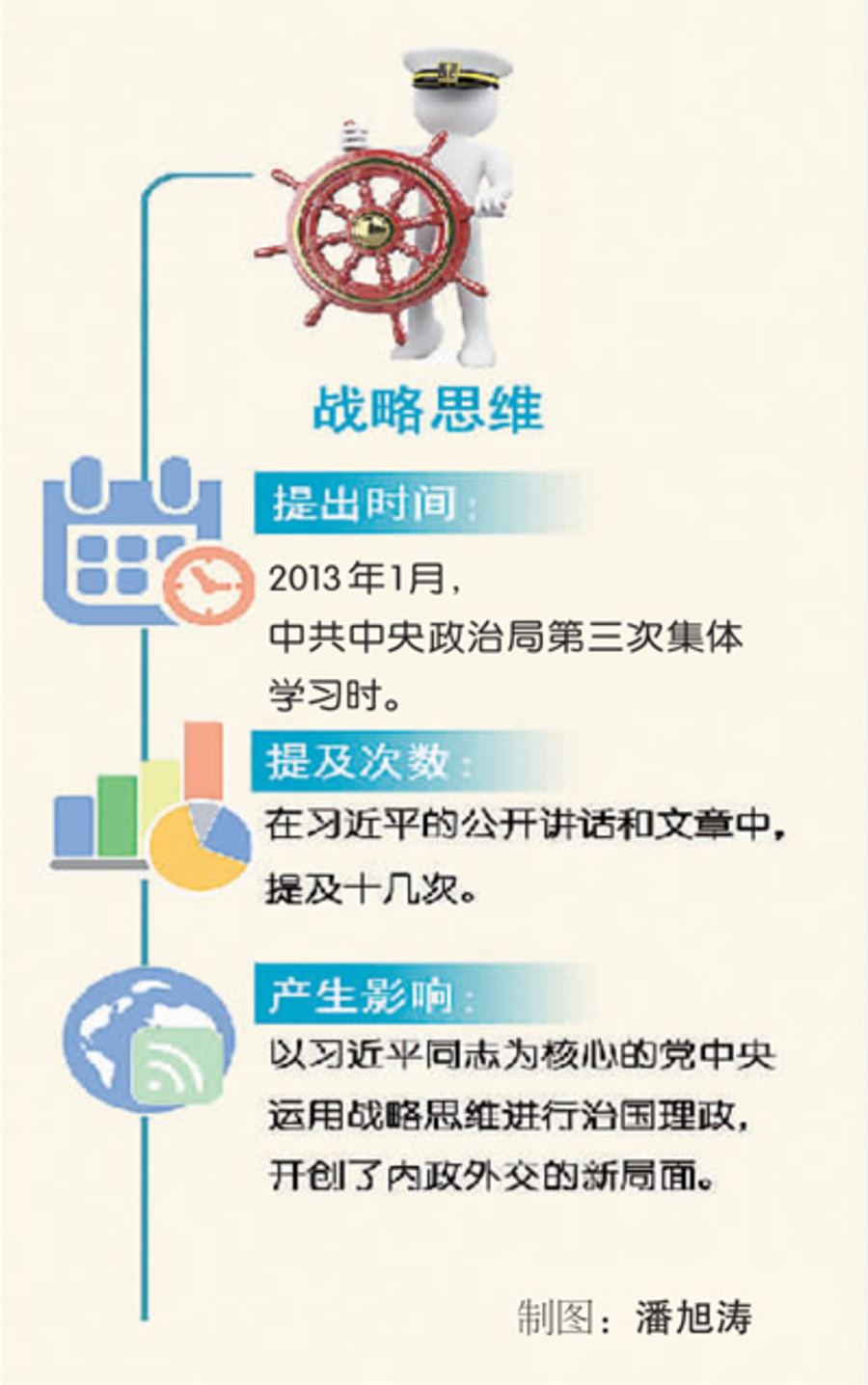 2013年1月,中共中央政治局就堅(jiān)定不移走和平發(fā)展道路進(jìn)行第三次集體學(xué)習(xí),習(xí)近平總書記在主持學(xué)習(xí)時(shí)提到戰(zhàn)略思維一詞。這是中共十八大以來,習(xí)近平在公開講話中首次提及戰(zhàn)略思維。