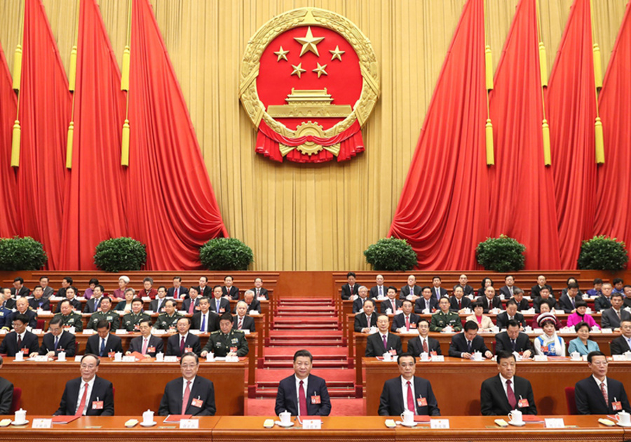 習近平、李克強、俞正聲、劉云山、王岐山、張高麗和大會主席團成員在主席臺就座。