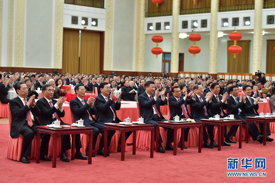 2月14日,中共中央、國(guó)務(wù)院在北京人民大會(huì)堂舉行2018年春節(jié)團(tuán)拜會(huì)。中共中央總書記、國(guó)家主席、中央軍委主席習(xí)近平發(fā)表重要講話。新華社記者鞠鵬攝