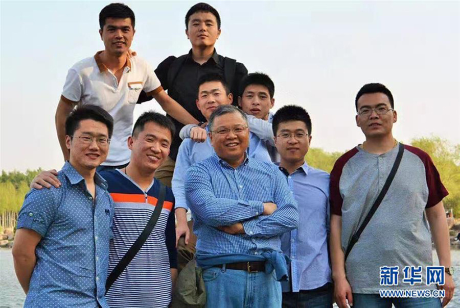 黃大年(前排中)與學生外出徒步時合影(資料照片)。“心有大我”的黃大年嘔心瀝血,點亮科技報國的明燈。新華社發(fā)