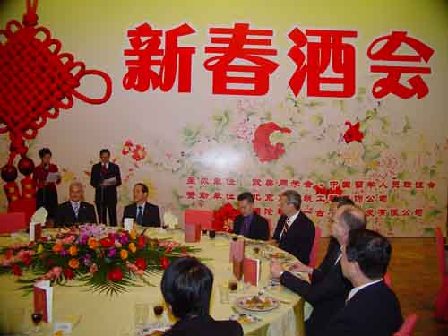 在歡樂祥和的氣氛中,來自全國政協(xié)、中共中央統(tǒng)戰(zhàn)部、外交部、教育部、人事部、中編辦公、共青團(tuán)中央、對外友協(xié)、國家自然科學(xué)基金委、香港特別行政區(qū)駐京辦和近30個主要留學(xué)國家駐華使館的外交使節(jié)等有關(guān)方面的200余位中外來賓歡聚歡聚一堂, 頻頻舉杯,共祝友誼,同賀新春。